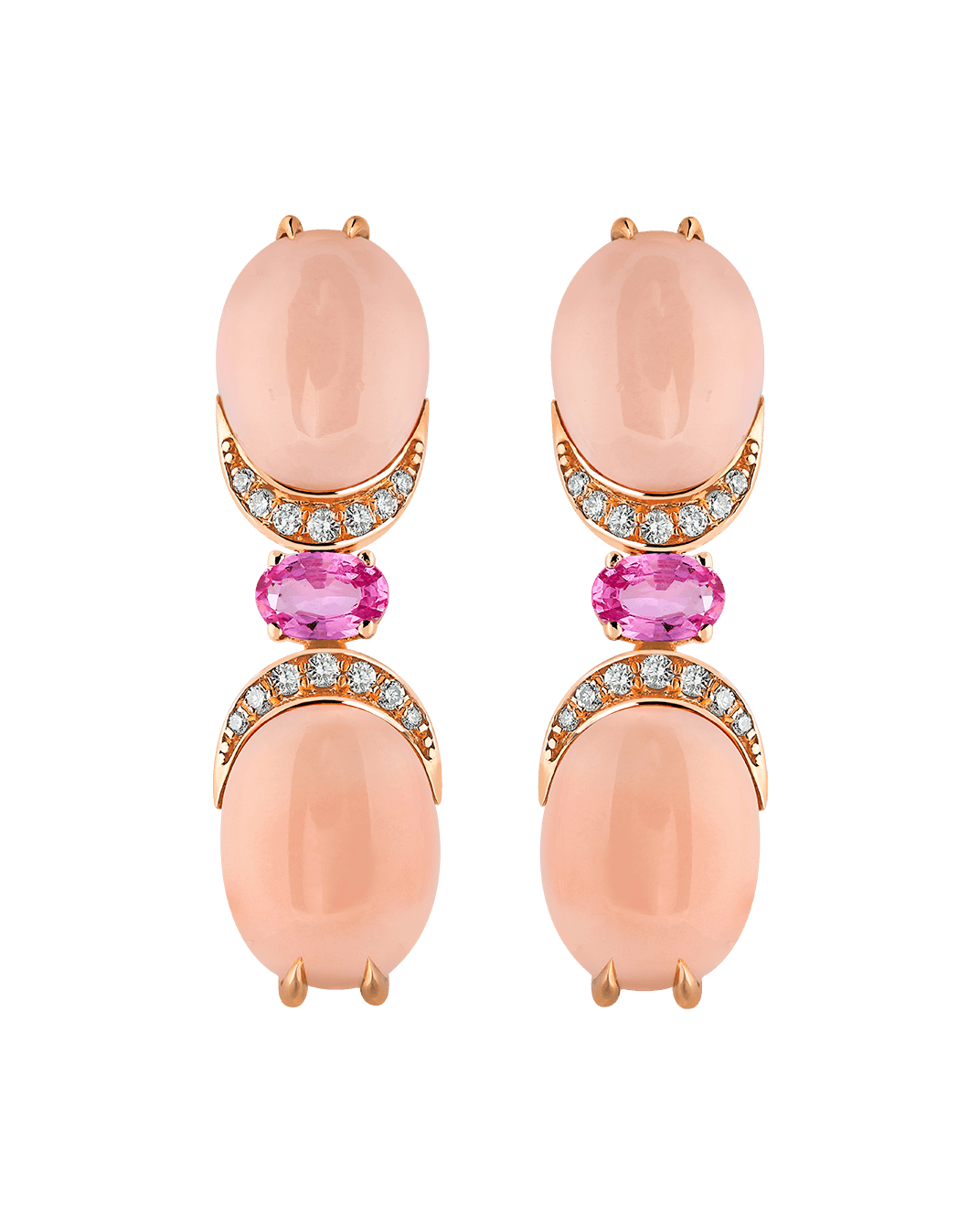 Tropica Colors Pırlantalı Pembe Safirli Mercan 18 Ayar Pembe Altın Sallantılı Küpe