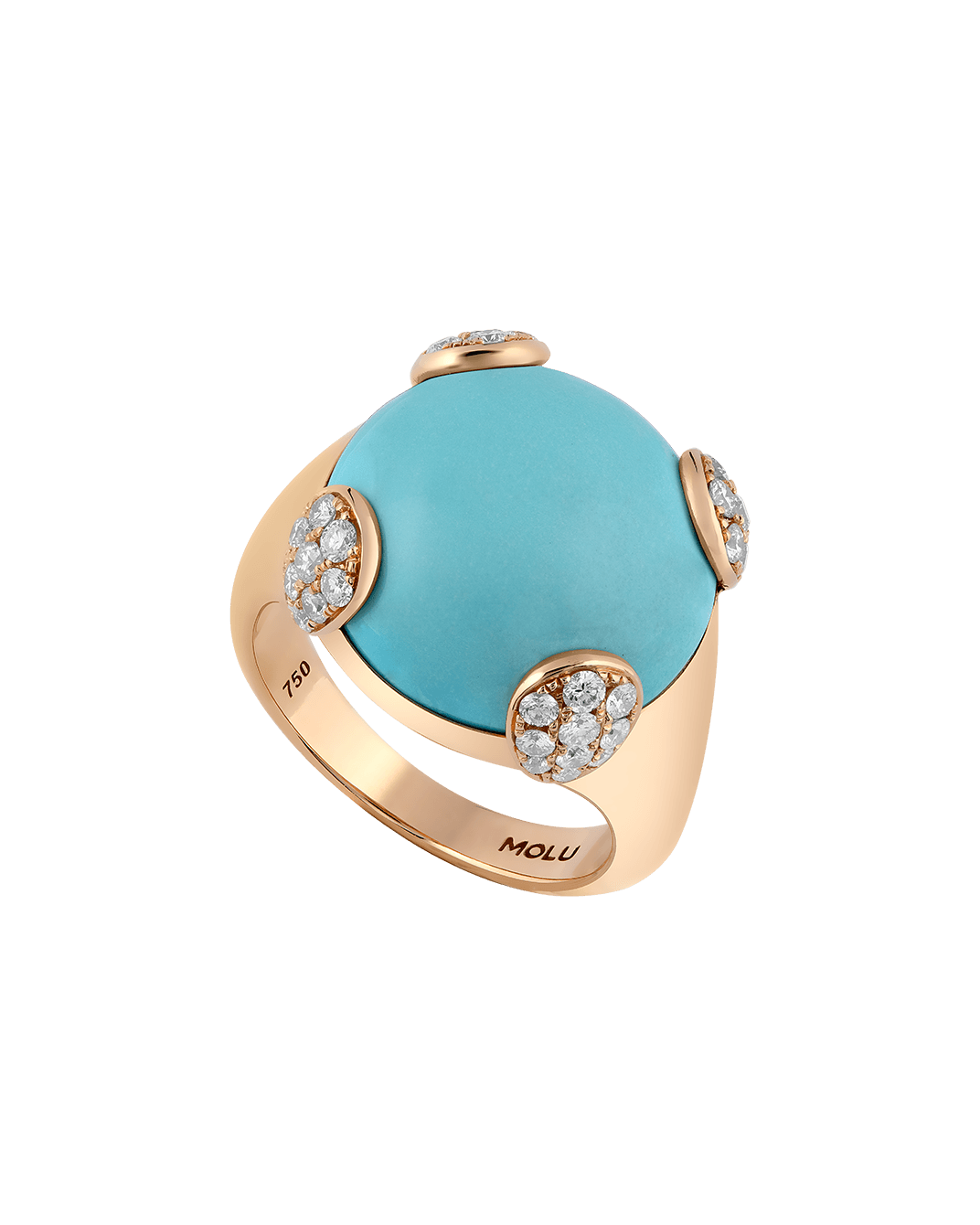Tropica Colors Pırlantalı 18 Ayar Pembe Altın Turkuazlı Yüzük