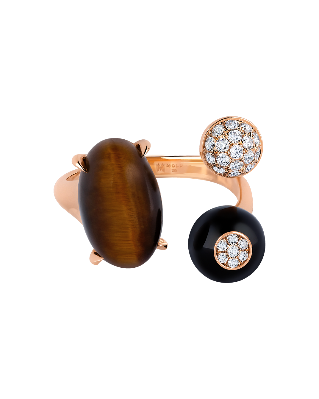 Tropica Colors Pırlantalı Kaplan Gözü Taşlı Siyah Mineli 18 Ayar Pembe Altın Yüzük