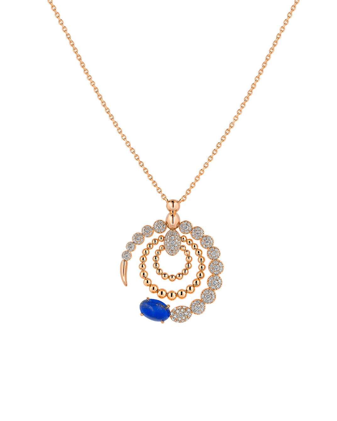 Tropica Pırlantalı 18 Ayar Pembe Altın Lapis Lazuli Büyük Kolye
