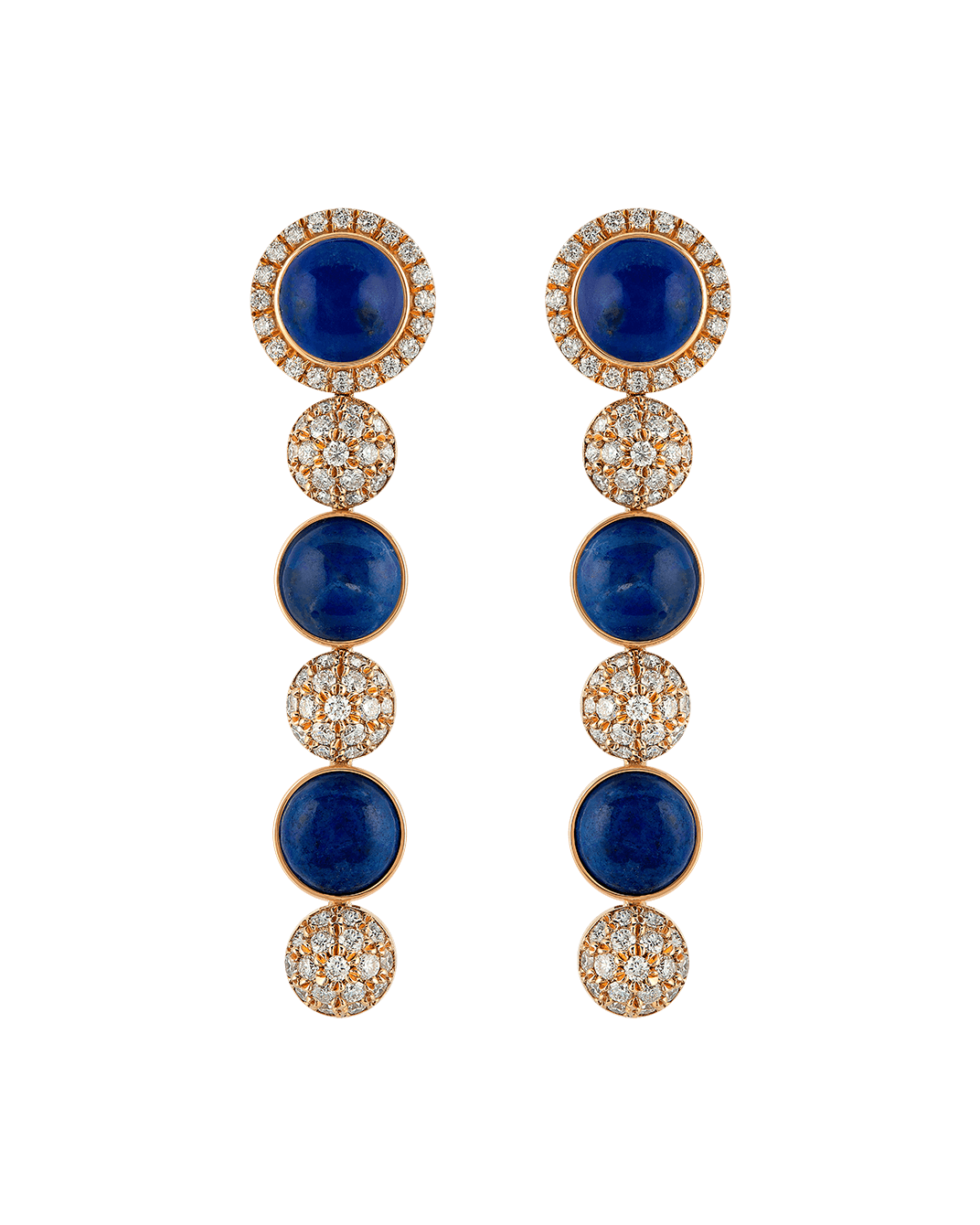 Tropica Colors Pırlantalı 18 Ayar Pembe Altın Lapis Lazuli Üç Taşlı Sallantılı Küpe
