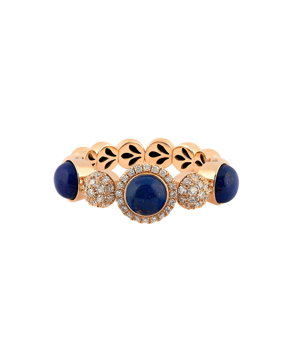 Tropica Colors Pırlantalı Lapis Lazuli 18 Ayar Pembe Altın Üç Taşlı Yüzük