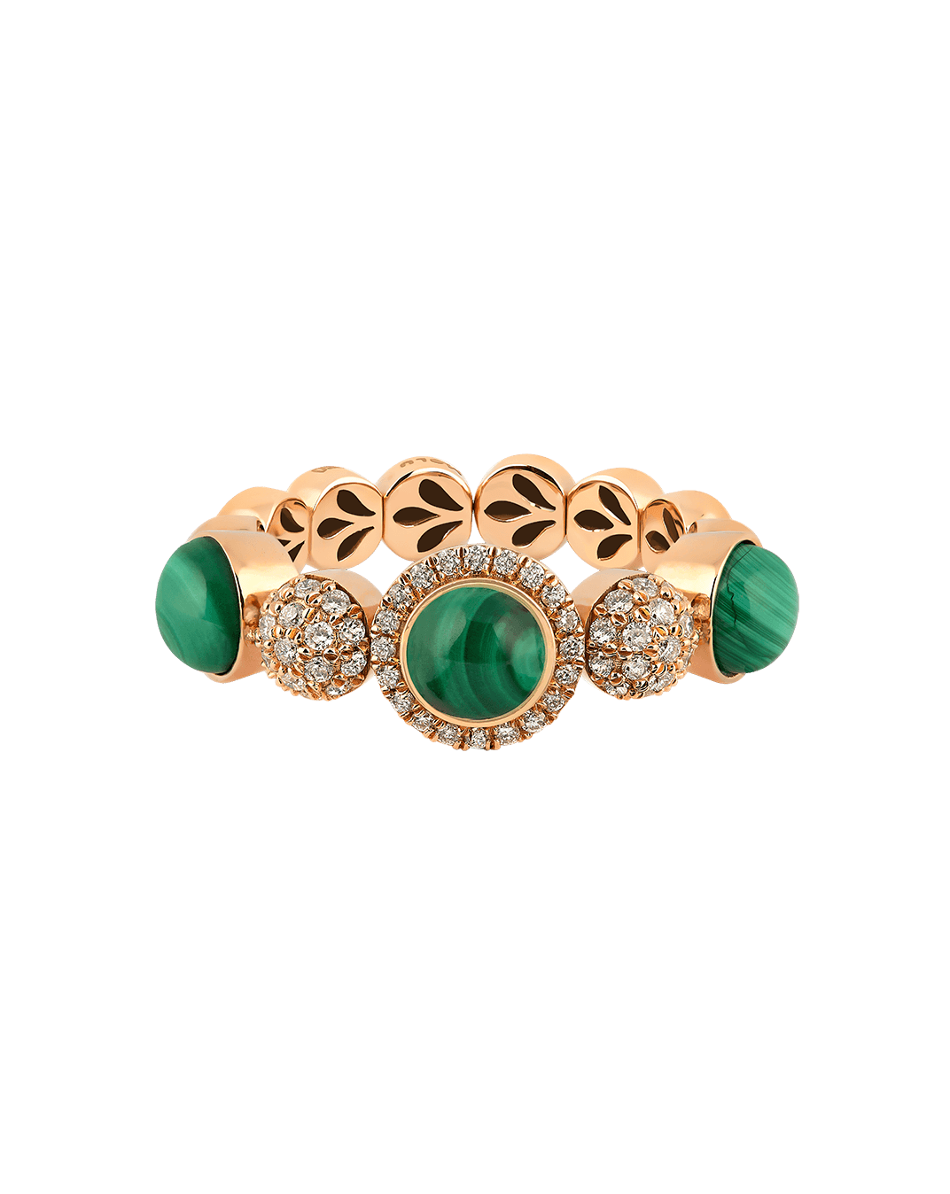 Tropica Colors Pırlantalı Malahitli 18 Ayar Pembe Altın Üç Taşlı Yüzük