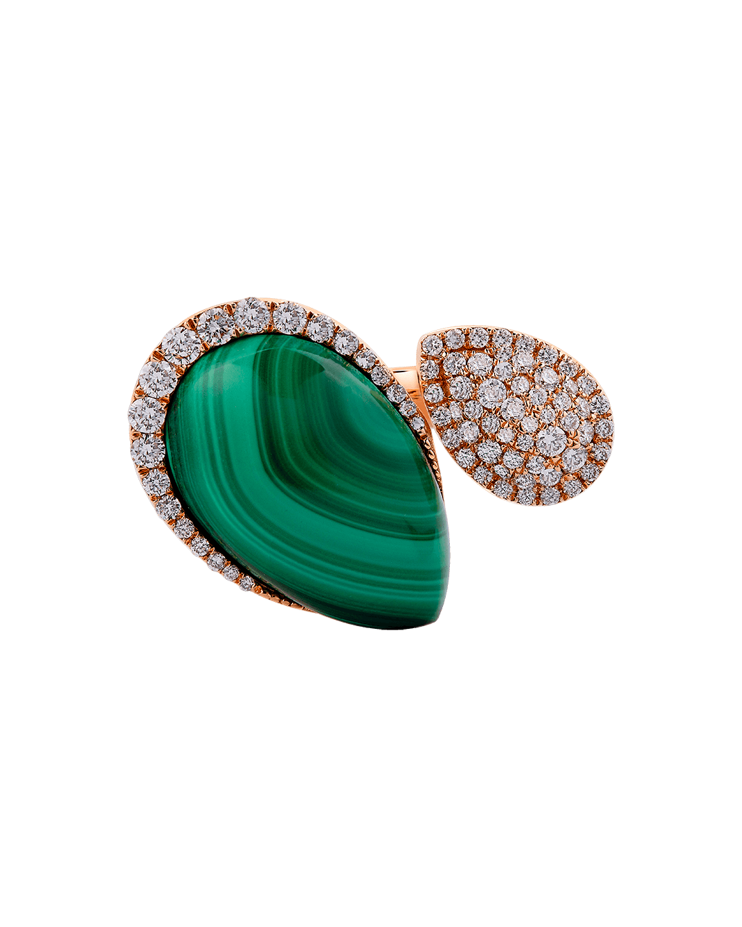 Tropica Colors Pırlantalı 18 Ayar Pembe Altın Malahitli Yüzük