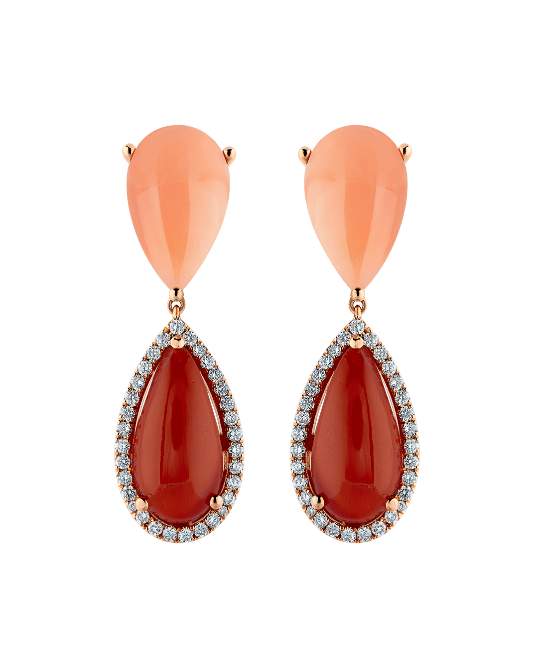 Tropica Colors Pırlantalı Mercanlı 18 Ayar Pembe Altın Sallantılı Küpe