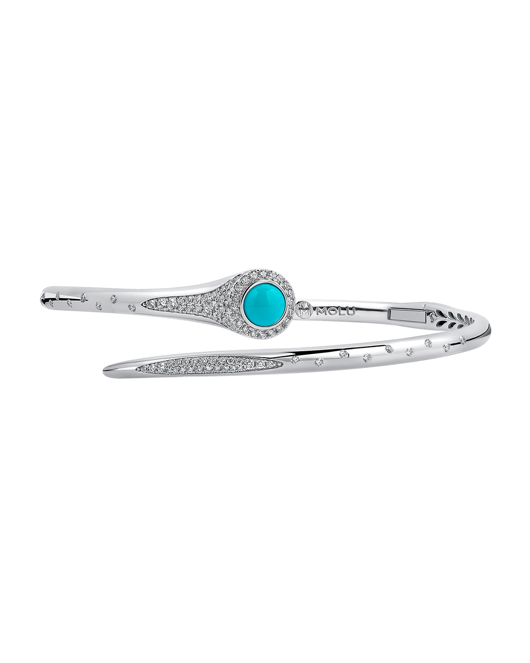 Tropica Pırlantalı 18 Ayar Beyaz Altın Turkuazlı İnce Kelepçe Bilezik