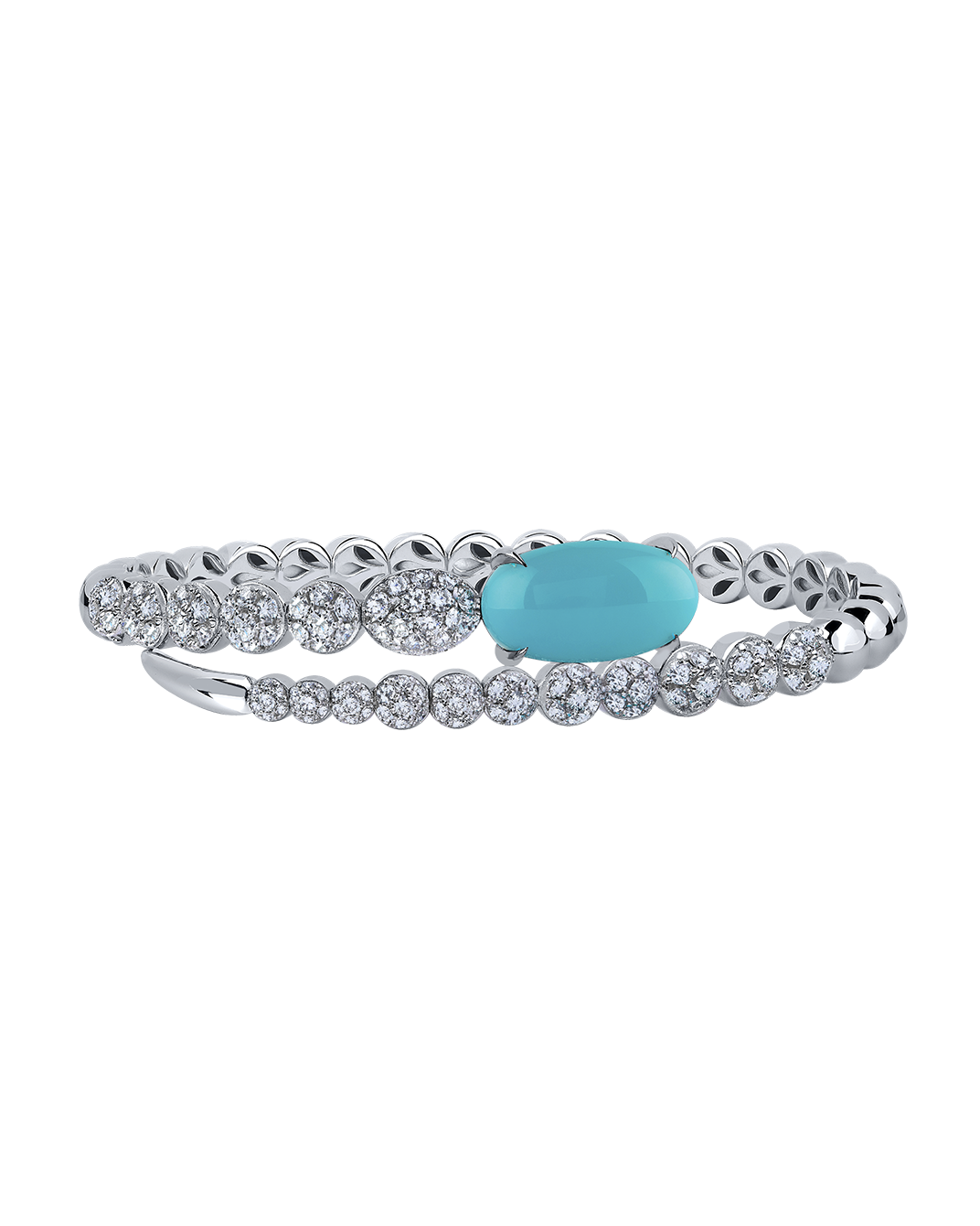 Tropica Pırlantalı 18 Ayar Beyaz Altın Turkuazlı Yaylı Bilezik