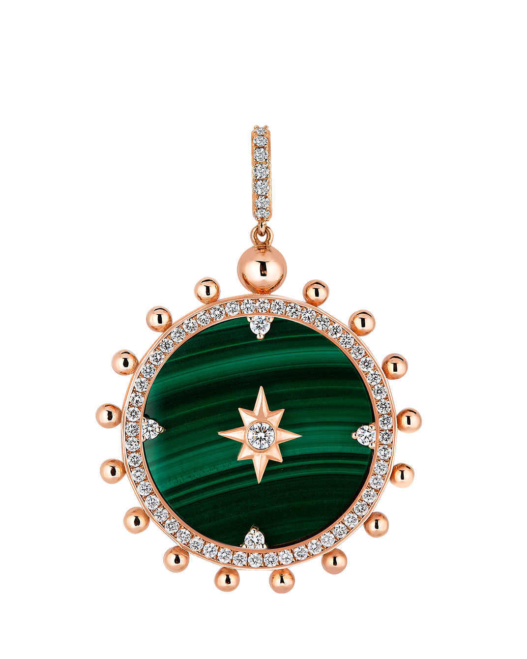 Wish Me Molu Pırlantalı Malahitli 14 Ayar Pembe Altın Büyük Charm