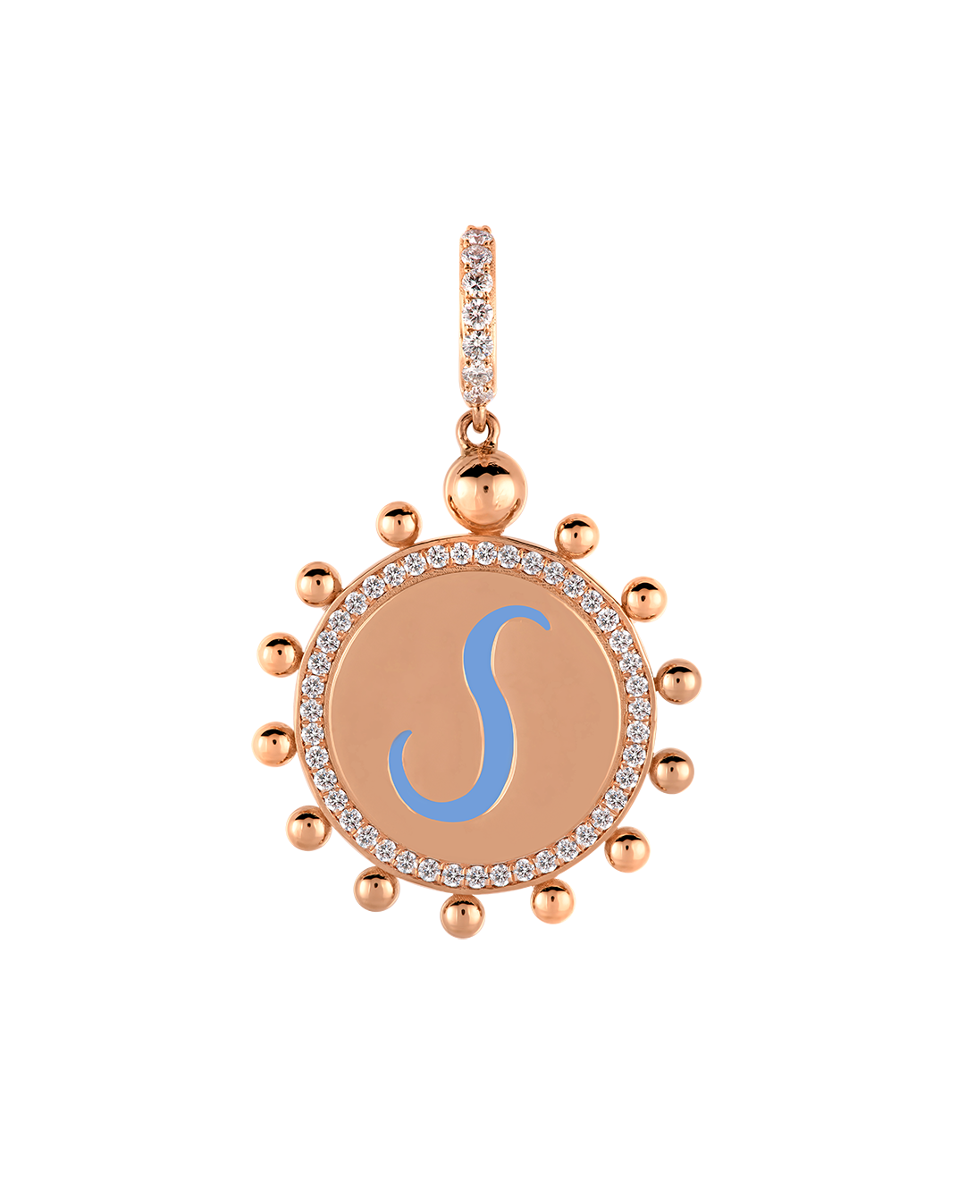 Wish Me Molu Pırlantalı Mavi Mineli 14 Ayar Pembe Altın S Harfli Charm