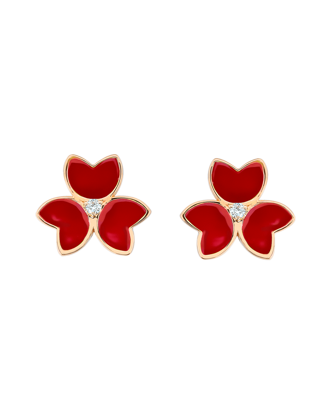 X by Molu Trifoglio Pırlantalı Kırmızı Mineli Küpe