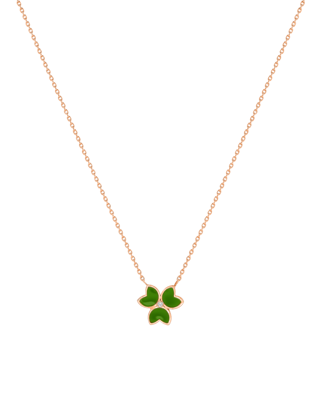 X by Molu Trifoglio Pırlantalı Yeşil Mineli Kolye