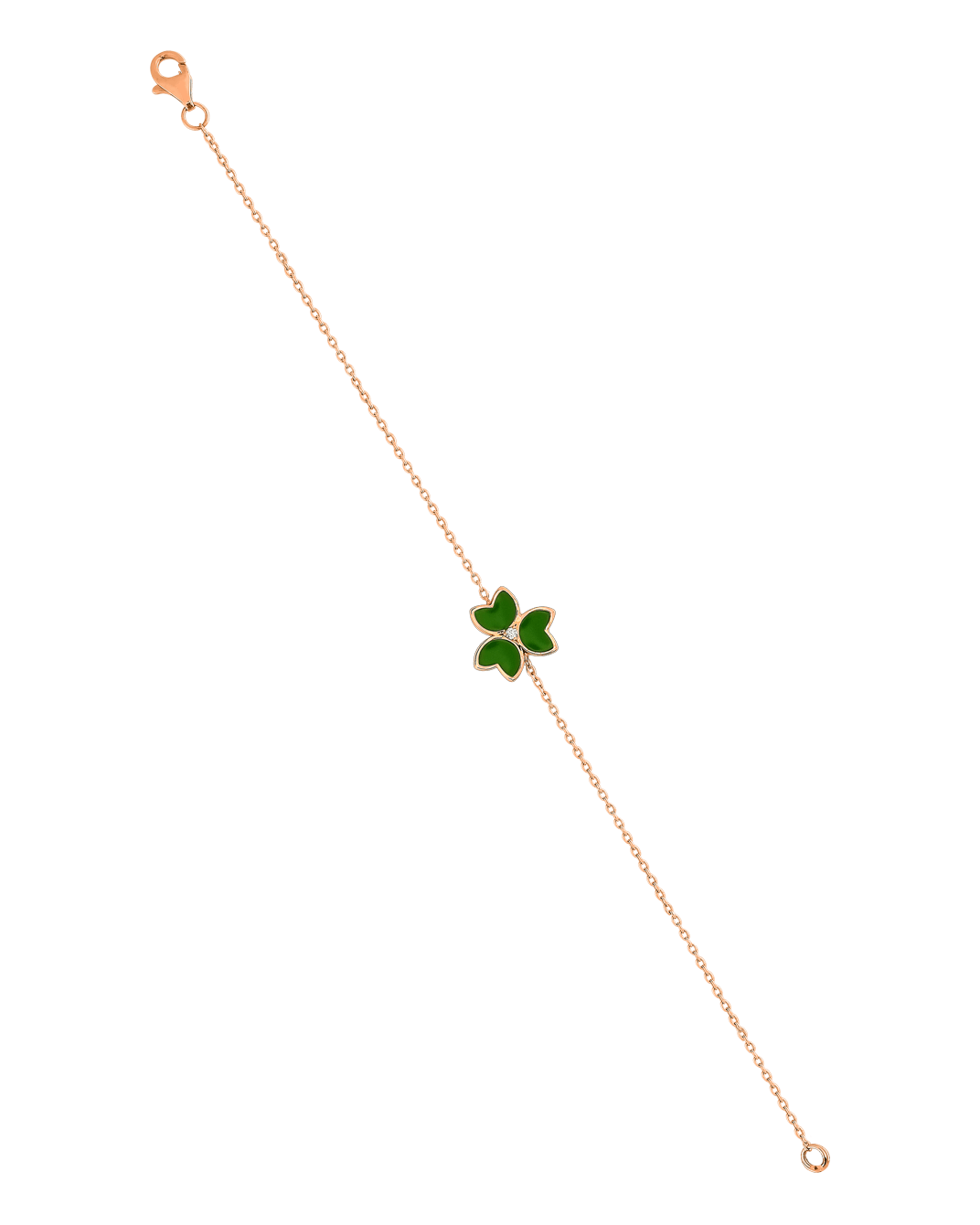 X by Molu Trifoglio Pırlantalı Yeşil Mineli Zincir Bilezik